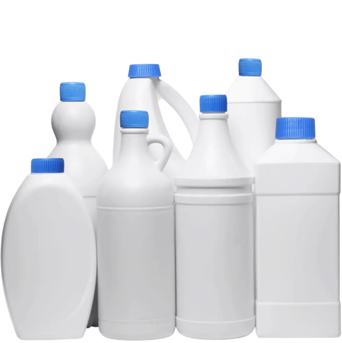 嘉明機械的兩種容器製造技術適用於家用產品容器所需的各種材料,形式和工藝。家庭清潔用品例如洗潔劑,地板清潔劑,地板拋光劑,玻璃清潔劑,廚房噴霧劑,洗碗精,洗衣精,漂白劑,浴室清潔劑,浴室噴霧劑,汽車上光劑,沙拉脫等。橢圓形或扁平的 PET 瓶經常需要使用加裝側加熱系統作為輔助工具,以產生更好的光潔度